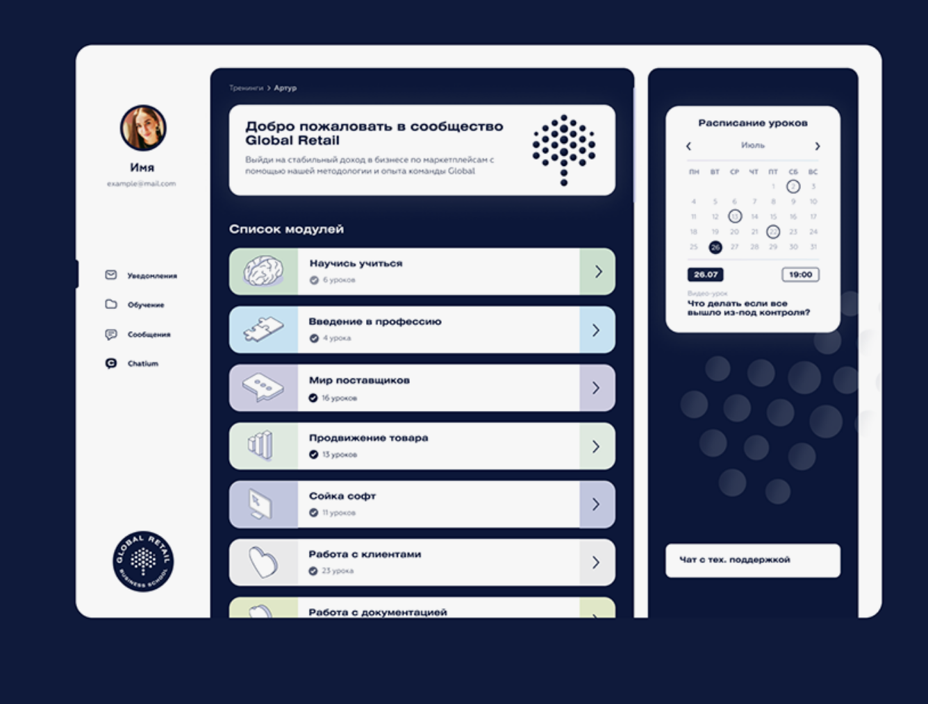 Полный доступ к основным модулям 5 модулей (от 3 до 10 уроков в каждом модуле)
